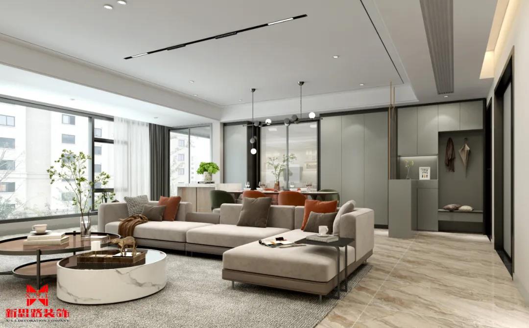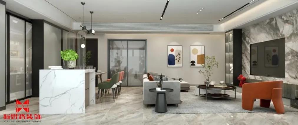 客ke廳ting采cai用yong無wu主zhu燈deng設she計ji,線xian條tiao磁ci吸xi燈deng造zao型xing流liu暢chang動dong感gan又you富fu有you藝yi術shu氣qi息xi。接jie近jin落luo地di的de玻bo璃li窗chuang起qi到dao了le極ji佳jia的de采cai光guang作zuo用yong,配pei合he柔rou和he的de室shi內nei光guang源yuan與yu布bu藝yi沙sha發fa,為wei空kong間jian增zeng添tian不bu少shao溫wen馨xin感gan。
