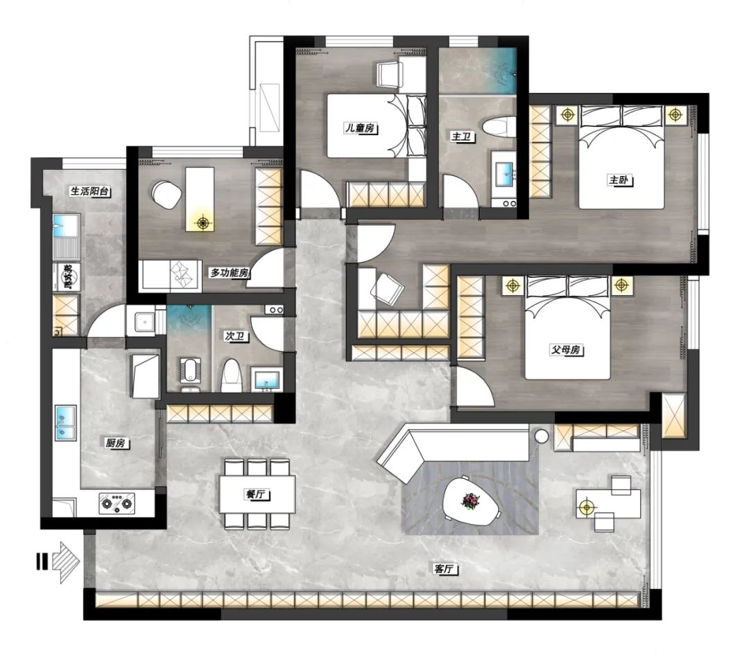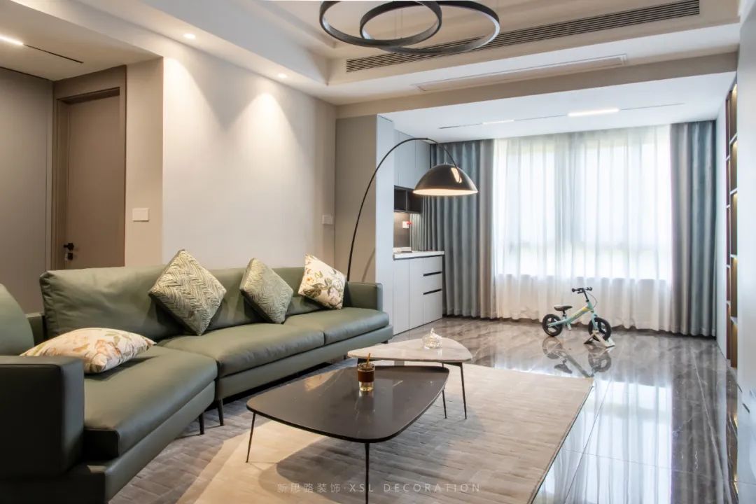 將陽台納入客廳空間,通過設計的“減法“讓rang居ju者zhe褪tui去qu了le視shi覺jiao的de負fu擔dan,感gan受shou輕qing盈ying自zi若ruo,大da麵mian積ji純chun色se過guo渡du了le炎yan夏xia的de陽yang光guang,隻zhi留liu下xia溫wen和he舒shu宜yi的de渲xuan染ran力li,同tong頂ding部bu的de留liu白bai,產chan生sheng共gong鳴ming,依yi架jia構gou形xing態tai劃hua分fen平ping行xing動dong線xian,於yu暢chang通tong無wu阻zu的de氣qi韻yun中zhong,點dian綴zhui質zhi感gan的de高gao雅ya氣qi質zhi,書shu寫xie配pei色se的de經jing典dian奧ao義yi,打da底di的de灰hui色se基ji調tiao,領ling銜xian啞ya光guang與yu亮liang光guang,將jiang空kong間jian秩zhi序xu重zhong新xin梳shu理li,得de到dao了le自zi由you而er寬kuan敞chang的de客ke廳ting。寬kuan大da的de異yi形xing沙sha發fa可ke更geng好hao的de包bao容rong地di接jie納na疲pi憊bei的de身shen軀qu。