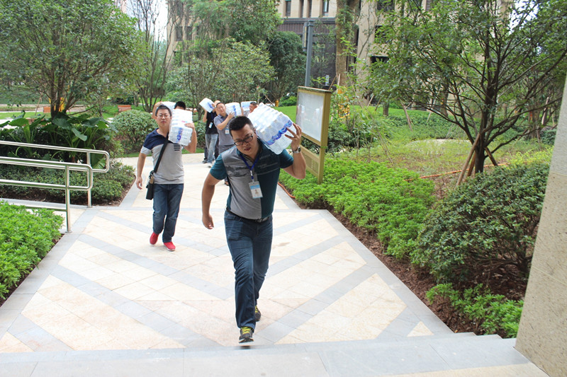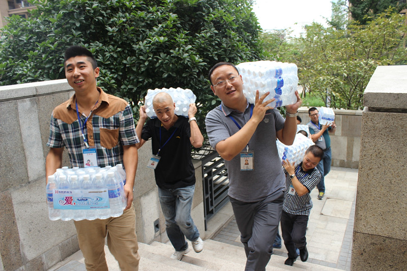 台階再高,天氣再熱,但所有人的腳步依舊堅定,心懷員工,都想快速地把水送到一線員工手中以解幹渴。