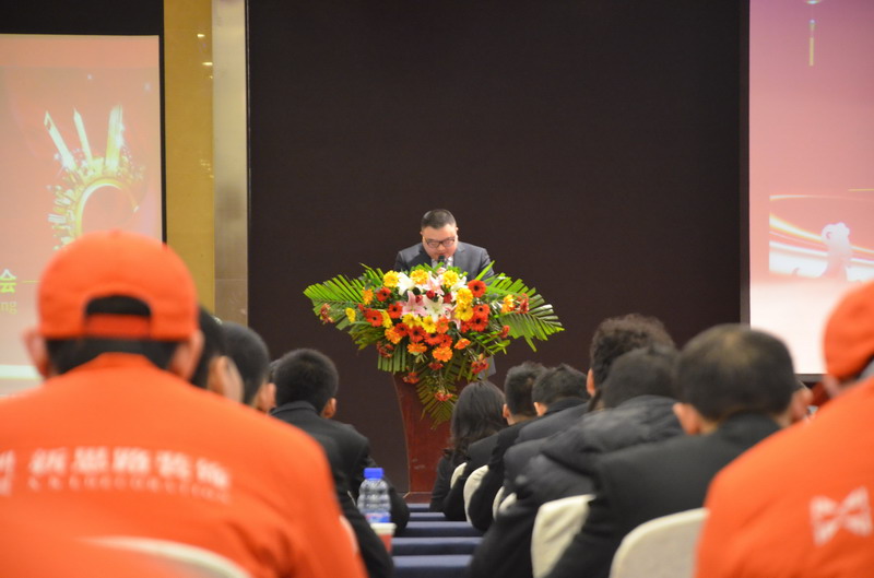 隨後,由張總作《新思路裝飾2014年度工作總結及2015年度戰略規劃綱要》報告。張總表示,2014年,在新思路全體家人的努力下,公司年度工作目標圓滿完成,並且做出了別人無法想象的成績:年度業績兩年翻;企業規模不斷壯大;企業知名度和美譽度顯著提升;團隊更加和諧、團結、有愛。隨後,張總就公司2014年的業績完成數據做了詳細的總結和分析,並提出了公司2015公司發展的戰略方向。他表示,在全新的2015年,新思路的目標會更高;壓力會更大;身上的擔子會更重,因此必須要做好以下幾個方麵:第一、完善企業發展的保障、實施機製大綱;第二、企業店麵規模擴張及業績突破;第三、建立強有力的領導團隊係統;第四、建立團隊自動化運轉的發展文化係統。最後,張總勉勵大家在新的一年要團結一心、努力進取,用更加紮實的工作作風、踏實的工作態度、無可阻擋的氣勢去奪取2015年各項工作的全麵勝利!