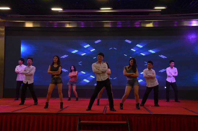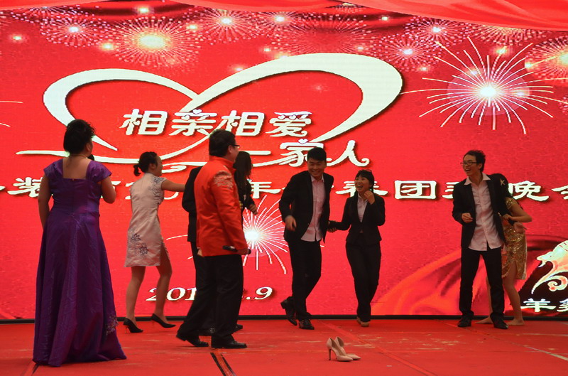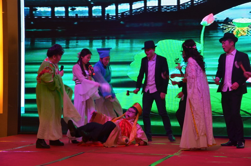 接下來的節目演出立刻讓晚會現場成為歡樂的殿堂。歌曲、舞蹈、小品、合唱多種節目形式,精彩紛呈,所有節目均為公司員工自編、自導、自演,充分反映出新思路裝飾生動而富有內涵的企業文化。繽彩紛呈、風格各異的十幾個節目贏得觀眾滿堂喝彩,充分展現出新思路家人多才多藝、能歌善舞的一麵。熱鬧喜慶的《拜新年》作為開場第一個節目閃亮登場,歡快的舞蹈、喜慶的旋律、愉悅的氛圍感染著每一位在場的觀眾,為整場晚會點燃激情。活力奔放的串燒舞蹈《小蘋果》引起現場尖叫聲不斷;工程部家人帶來的歌曲《超越夢想》以大合唱的形式唱響了新思路人超越夢想、勇攀高峰的激情和心聲;性感柔美的歌伴舞《萬水千山總是情》更是引得場下“粉絲”陣陣尖叫。要說全場最閃亮的舞蹈,當屬才女徐藝丹帶來的獨舞《映山紅》,優美的舞姿訴說著無盡的情思,散發著醉人的芳香,看得人是如癡如醉。而江北店家人帶來的小品《招聘》延續去年的爆笑風格,幽默的台詞,惟妙惟肖的模仿讓現場笑聲連連,掌聲不斷。還有南坪店家人表演的小品《新白娘子傳奇》、工程部家人帶來的情景劇《交房》、沙坪壩店家人帶來的對唱《有你有我》、江北店家人表演的相聲《回家》......家人們以業餘的身份發揮出了專業演員的水平,把角色演繹得惟妙惟肖,讓人歎為觀止。