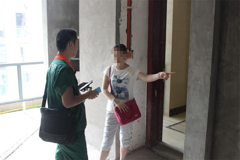 偉星工作人員正在跟業主交流水壓測試情況