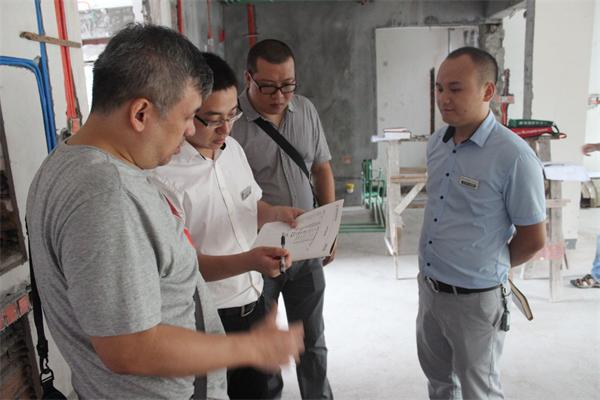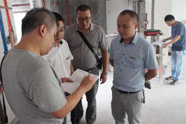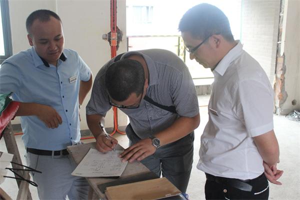業主、設計師、項目經理三方商討廚房水管改造方案