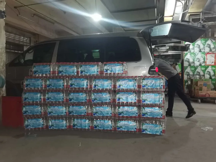 飲用水采購現場,選擇的是品質相對更好的礦泉水