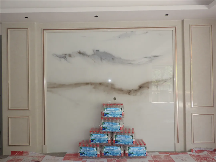 保利堂悅工地。電視牆初步製作完成,非常漂亮