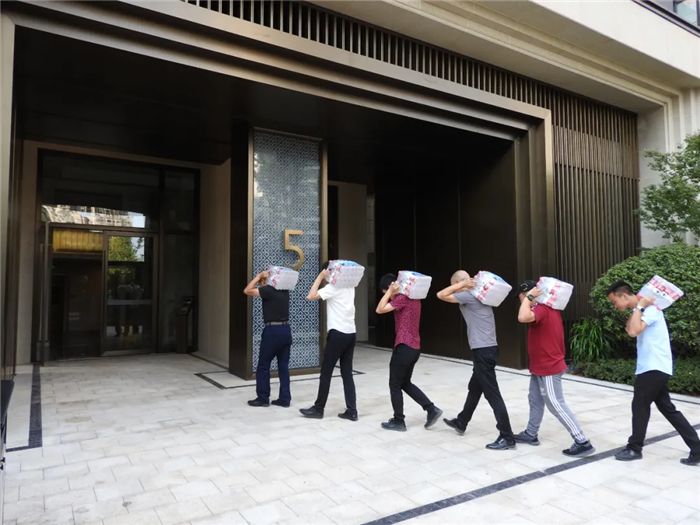 慰問小組在保利天彙小區搬運礦泉水