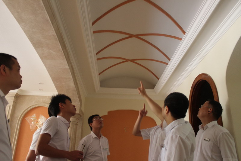 張總正在向大家詳細講解頂麵造型施工技巧