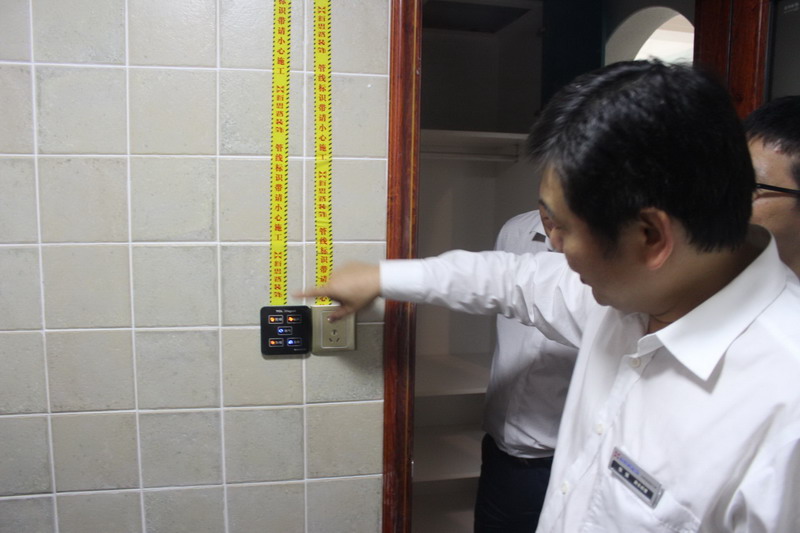 張總正在仔細檢查牆麵貼磚情況