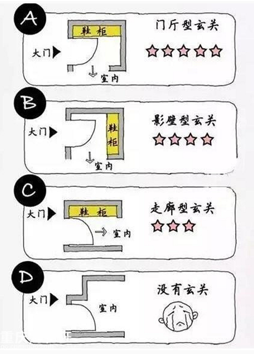 ,然後能能卸下一天的疲憊,這就是玄關的功能。一般家庭的玄關設計有如下幾種,