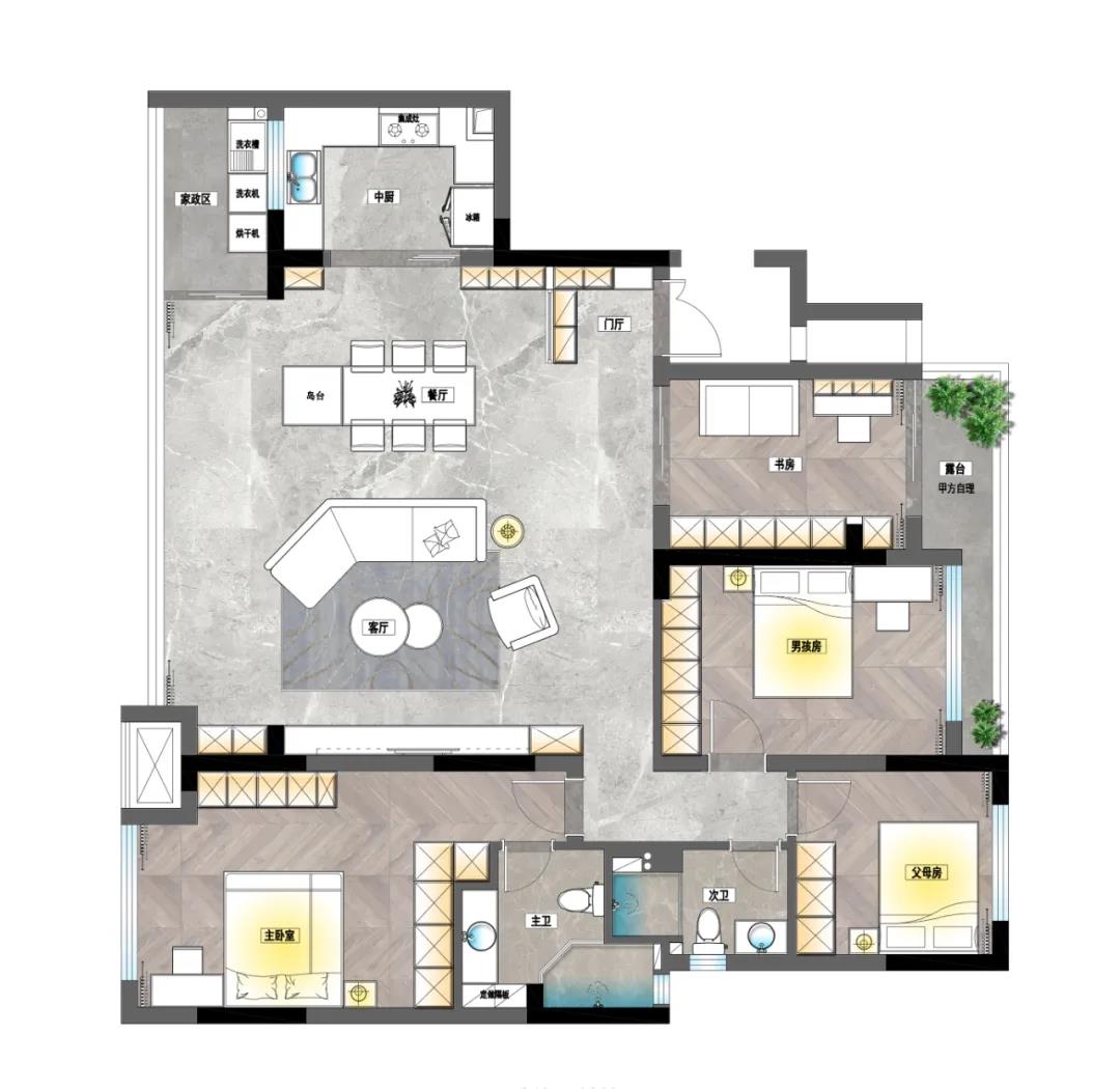 本ben案an設she計ji入ru戶hu門men廳ting即ji可ke以yi達da到dao私si密mi獨du立li性xing,又you可ke以yi讓rang整zheng體ti空kong間jian大da氣qi端duan莊zhuang,吊diao頂ding是shi無wu主zhu燈deng的de設she計ji手shou法fa打da造zao,主zhu臥wo室shi以yi及ji兒er童tong房fang的de收shou納na櫃gui與yu學xue習xi功gong能neng得de到dao了le最zui大da化hua,主zhu衛wei,次ci衛wei空kong間jian考慮到幹濕區分明,實現了客戶對新房的所有需求。