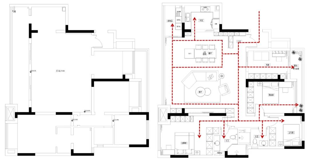 本案例中,常住人口是祖孫三輩5人ren,空kong間jian規gui劃hua上shang,客ke戶hu有you比bi較jiao大da的de收shou納na需xu求qiu。在zai充chong分fen了le解jie客ke戶hu喜xi愛ai的de設she計ji風feng格ge與yu需xu求qiu後hou,設she計ji師shi結jie合he實shi際ji戶hu型xing,將jiang一yi個ge輕qing奢she又you溫wen柔rou的de家jia居ju空kong間jian呈cheng現xian在zai我wo們men麵mian前qian。