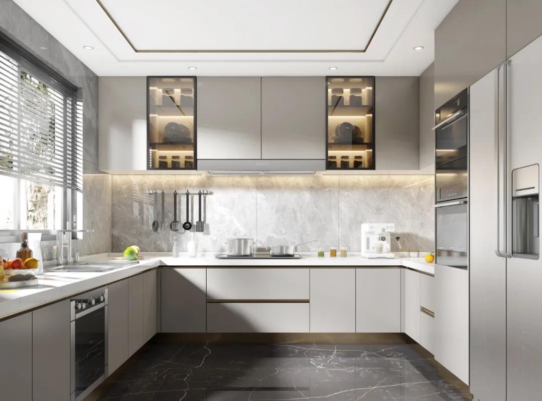 廚(chu)房(fang)主(zhu)色(se)調(tiao)采(cai)用(yong)灰(hui)白(bai)色(se),讓(rang)空(kong)間(jian)看(kan)起(qi)來(lai)更(geng)加(jia)幹(gan)淨(jing)溫(wen)柔(rou)。吸(xi)頂(ding)式(shi)的(de)抽(chou)油(you)煙(yan)機(ji)相(xiang)較(jiao)傳(chuan)統(tong)油(you)煙(yan)機(ji)來(lai)說(shuo)造(zao)型(xing)更(geng)為(wei)流(liu)暢(chang),智(zhi)能(neng)化(hua)烹(peng)飪(ren)設(she)備(bei)齊(qi)全(quan),滿(man)足(zu)客(ke)戶(hu)一(yi)家(jia)的(de)多(duo)樣(yang)化(hua)烹(peng)飪(ren)需(xu)求(qiu)。