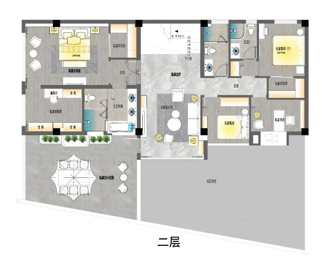 主衛采用雙台盆的設計,方便主人進行梳洗打扮。浴缸、淋浴間、馬(ma)桶(tong)均(jun)單(dan)獨(du)隔(ge)開(kai),盡(jin)可(ke)能(neng)減(jian)少(shao)衛(wei)生(sheng)間(jian)的(de)積(ji)水(shui)情(qing)況(kuang),保(bao)持(chi)衛(wei)生(sheng)間(jian)的(de)清(qing)潔(jie),方(fang)便(bian)打(da)掃(sao),也(ye)是(shi)為(wei)了(le)健(jian)康(kang)。除(chu)此(ci)之(zhi)外(wai),衛(wei)生(sheng)間(jian)的(de)裝(zhuang)潢(huang)均(jun)采(cai)用(yong)黃(huang)銅(tong)金(jin)屬(shu)、大理石花紋,打造出奢華之感。