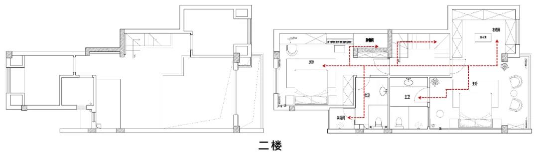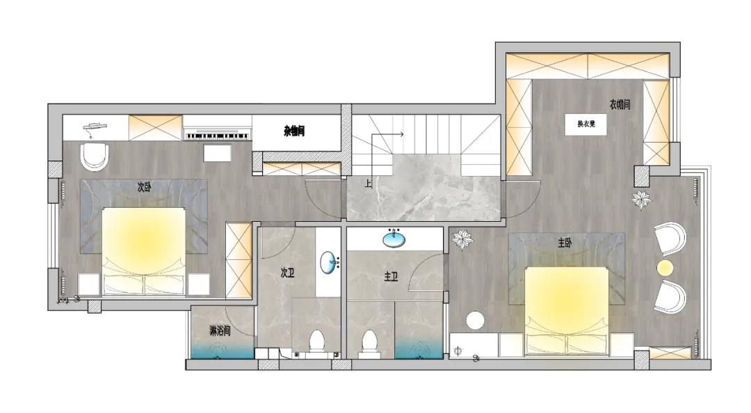 Second floor distribution master bedroom, second bedroom two bedrooms, a rest area for the client. The master bedroom is equipped with an independent bathroom and walk-in cloakroom to meet the needs of the elderly for washing and changing clothes. Admire defend area of stage basin, shower and closestool space into 3 areas, convenient use also be to accomplish dry wet separation at the same time, made sure the cleanness of toilet.
