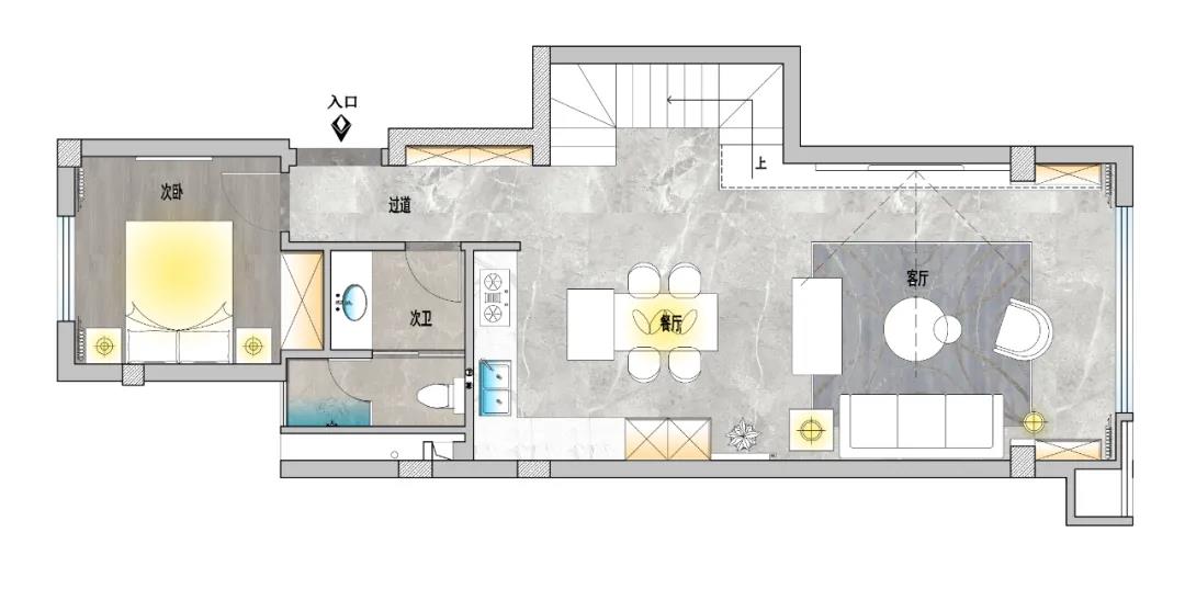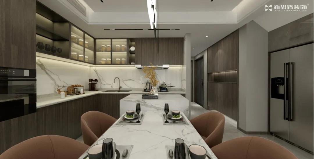 Considering the relatively small number of permanent residents and diners, we only choose a table for four people, which meets the daily needs of customers and is also convenient for the display of dishes and table care. "L" model kitchen design, move line is fluent, area is wide, reduce the possibility that produces collision, reflect what we take "with person this" design concept and care to the old person.