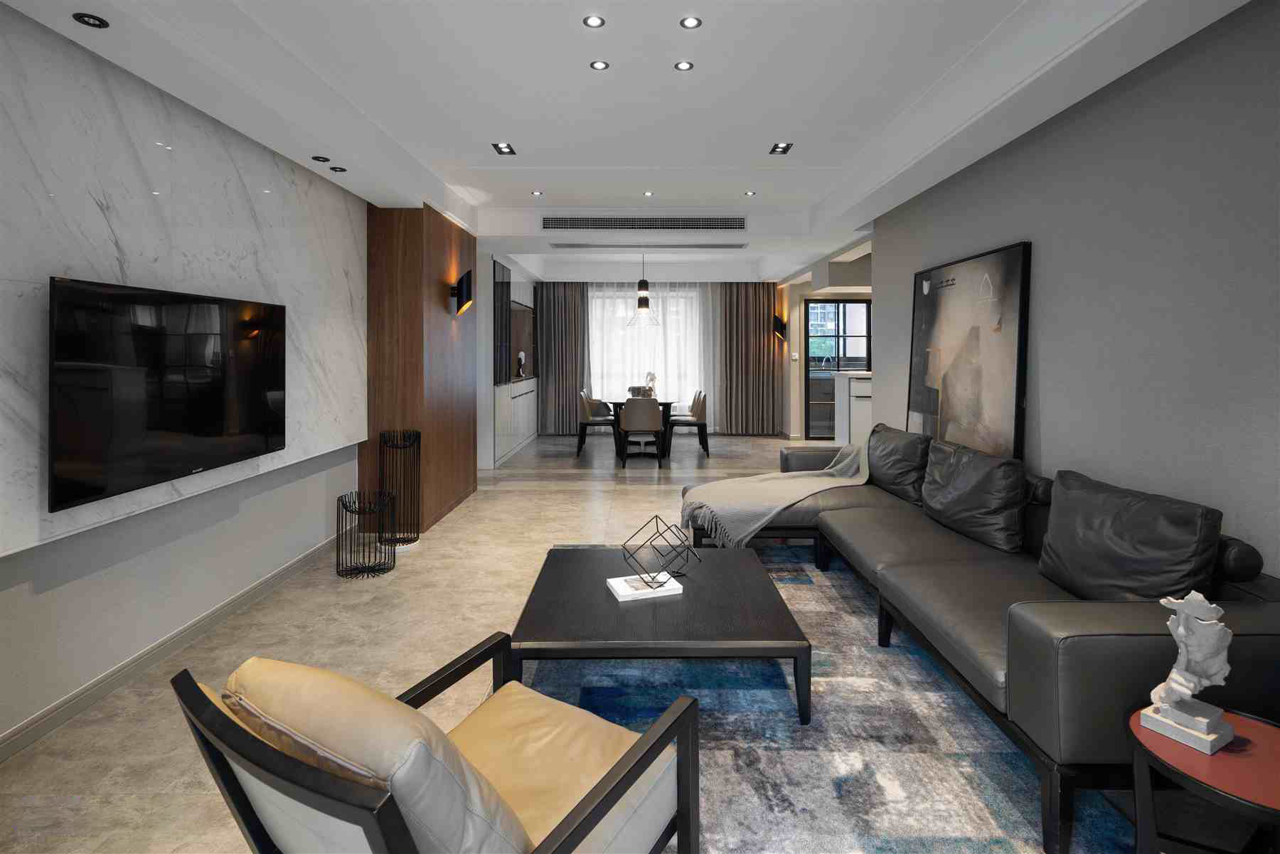 整體空間采用了黑白灰三種色調,大麵積的地毯鋪設與軟裝搭配,皆彰顯高品質。