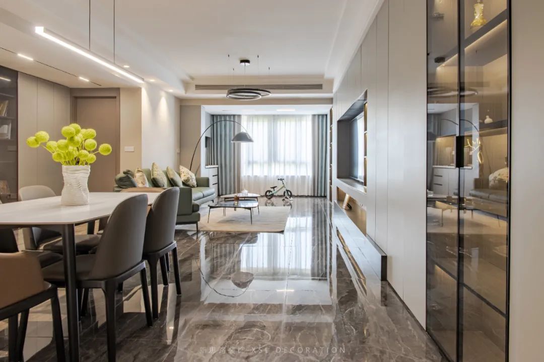 廚餐廳互融的空間動線,串聯起家人之間的情感交流,營造出細致入微的空間關懷。設計師以空間為載體,賦予了“家”多重的可能性,喚醒了都市韻律中的精神共鳴。
