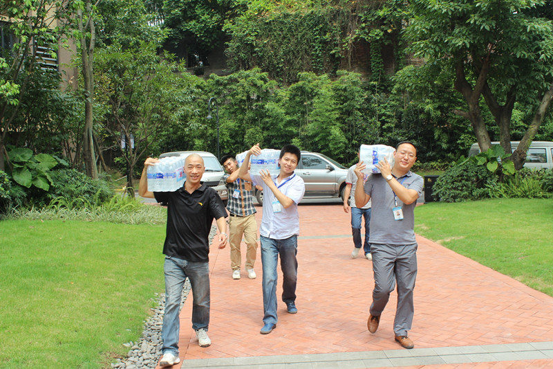 台階再高,天氣再熱,但所有人的腳步依舊堅定,心懷員工,都想快速地把水送到一線員工手中以解幹渴。