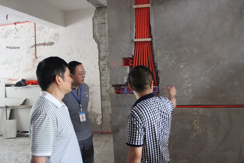 在送水之餘,工程部文經理和南坪店楊店長還細心地跟業主交流施工細節