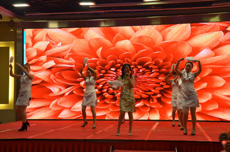 接下來的節目演出立刻讓晚會現場成為歡樂的殿堂。歌曲、舞蹈、小品、合唱多種節目形式,精彩紛呈,所有節目均為公司員工自編、自導、自演,充分反映出新思路裝飾生動而富有內涵的企業文化。繽彩紛呈、風格各異的十幾個節目贏得觀眾滿堂喝彩,充分展現出新思路家人多才多藝、能歌善舞的一麵。熱鬧喜慶的《拜新年》作為開場第一個節目閃亮登場,歡快的舞蹈、喜慶的旋律、愉悅的氛圍感染著每一位在場的觀眾,為整場晚會點燃激情。活力奔放的串燒舞蹈《小蘋果》引起現場尖叫聲不斷;工程部家人帶來的歌曲《超越夢想》以大合唱的形式唱響了新思路人超越夢想、勇攀高峰的激情和心聲;性感柔美的歌伴舞《萬水千山總是情》更是引得場下“粉絲”陣陣尖叫。要說全場最閃亮的舞蹈,當屬才女徐藝丹帶來的獨舞《映山紅》,優美的舞姿訴說著無盡的情思,散發著醉人的芳香,看得人是如癡如醉。而江北店家人帶來的小品《招聘》延續去年的爆笑風格,幽默的台詞,惟妙惟肖的模仿讓現場笑聲連連,掌聲不斷。還有南坪店家人表演的小品《新白娘子傳奇》、工程部家人帶來的情景劇《交房》、沙坪壩店家人帶來的對唱《有你有我》、江北店家人表演的相聲《回家》......家人們以業餘的身份發揮出了專業演員的水平,把角色演繹得惟妙惟肖,讓人歎為觀止。