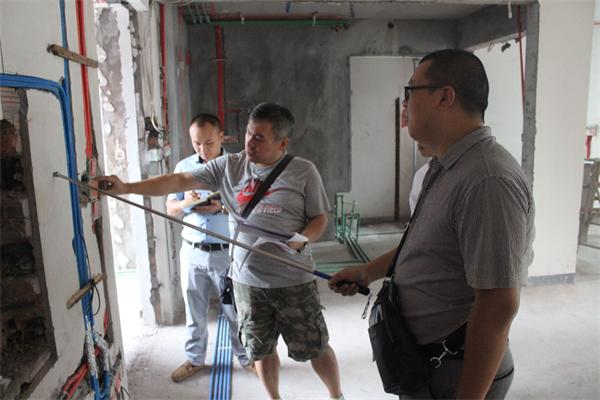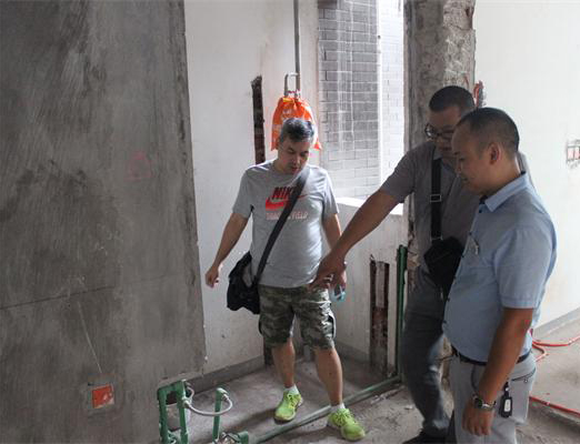 業主、設計師、項目經理三方商討廚房水管改造方案