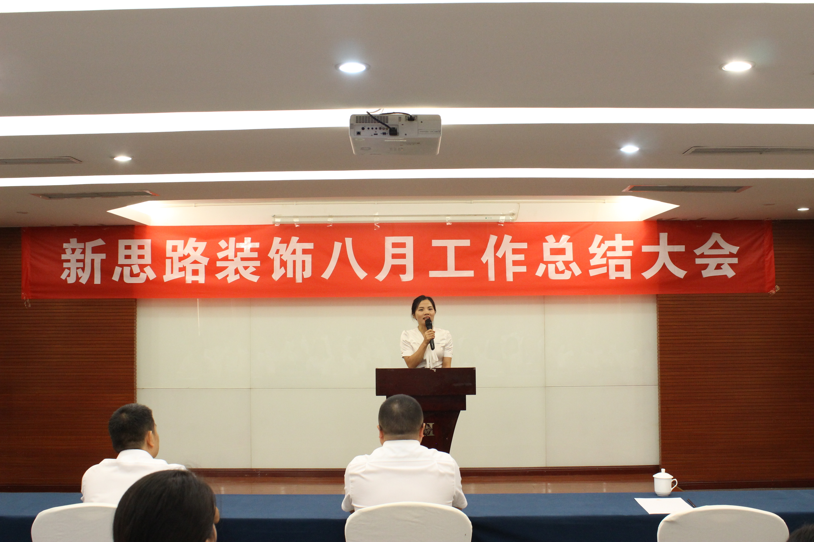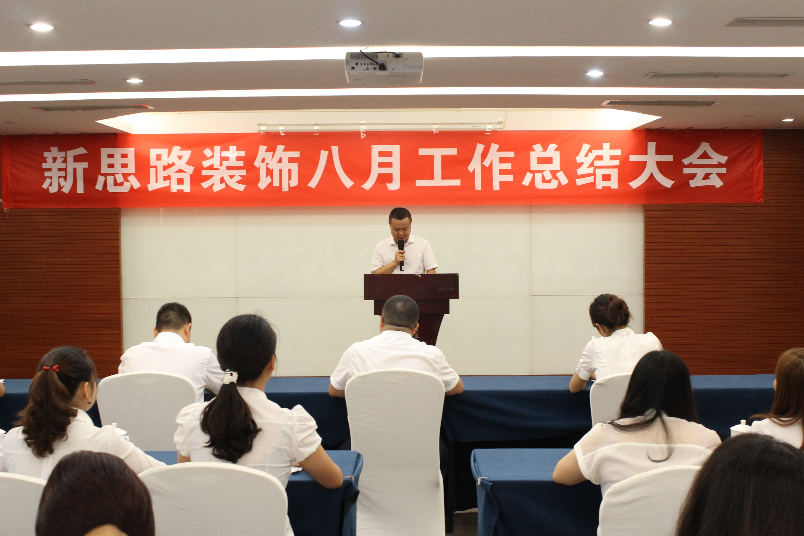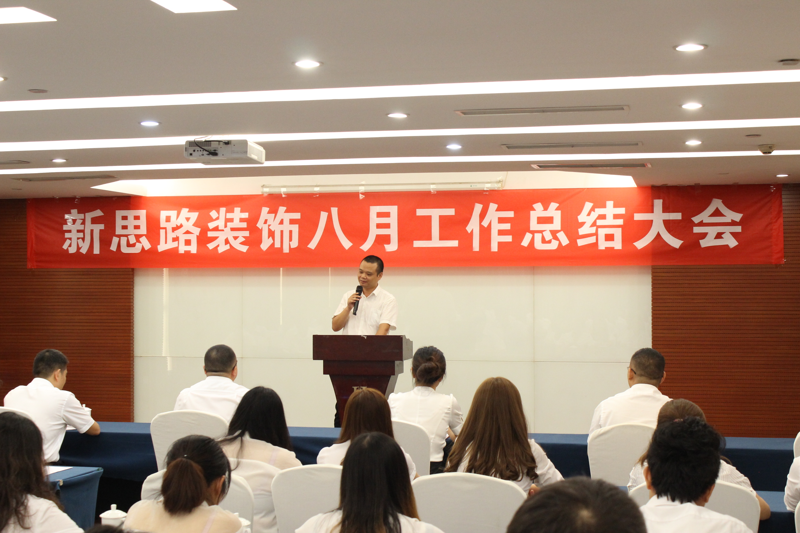 2017年9月1日,雨洗山城,金秋氣爽,新思路裝飾在學豪酒店隆重舉行了8月工作總結大會。來自公司總經辦、運營部、南坪店、北紅星店、巴南店、工程部等店麵部門的100多名員工聚集一堂,共同回顧8月的碩果累累,展望9月的無限生機。