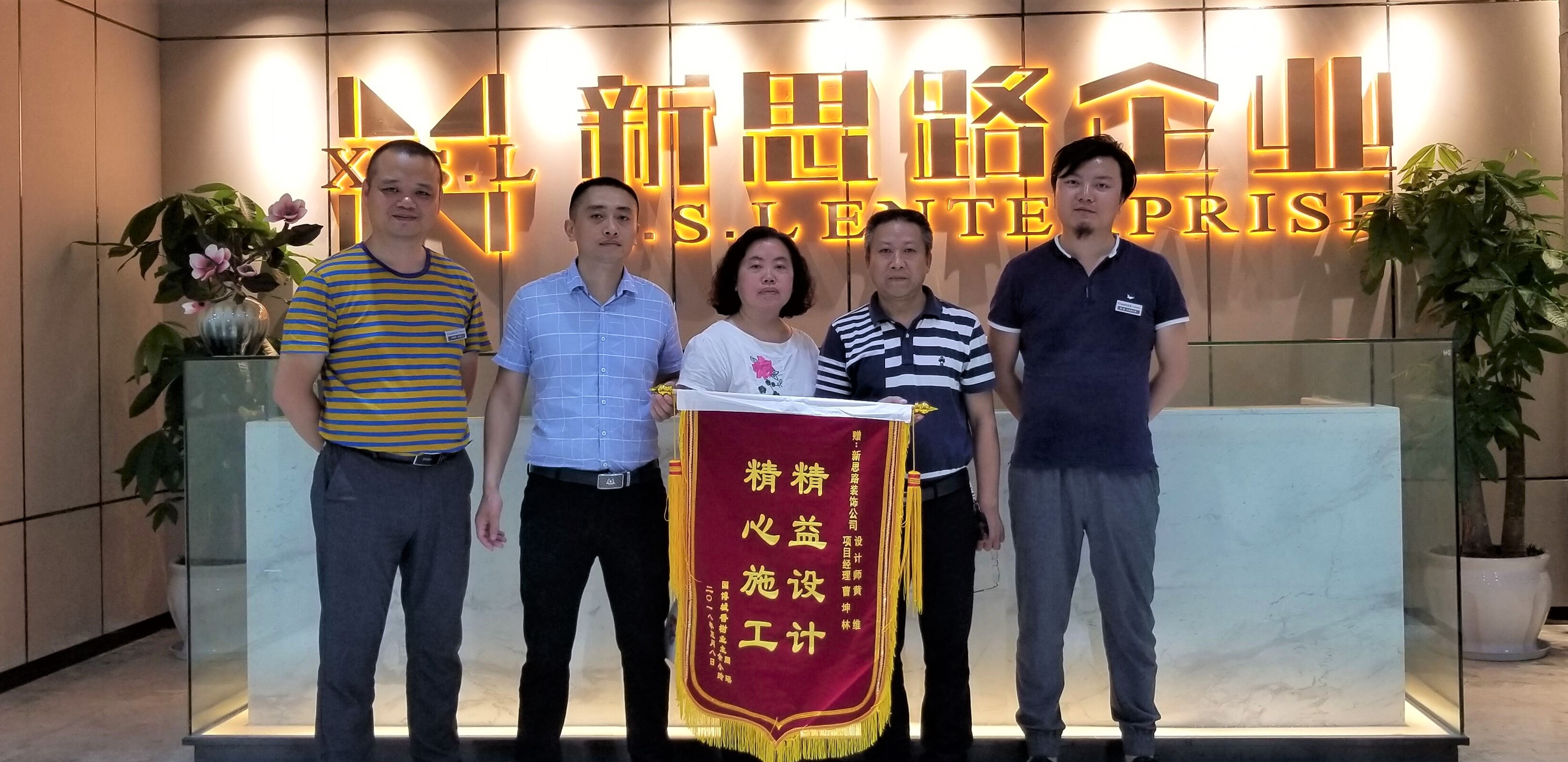 5月20日下午,來自國博城香榭的業主周老師夫婦將一麵寫有“精益設計、精心施工”的大紅錦旗交到北區雷店長手中,以感謝新思路裝飾貼心的家裝服務。