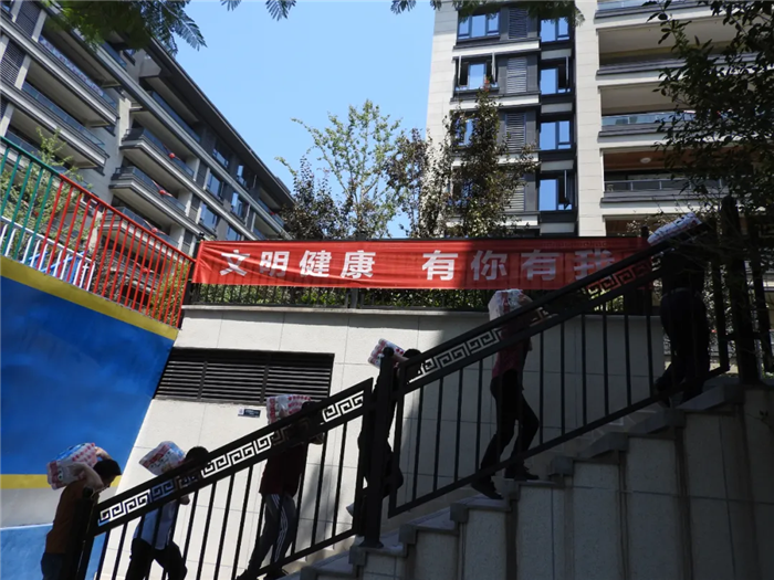 慰問小組在保利天彙小區搬運礦泉水