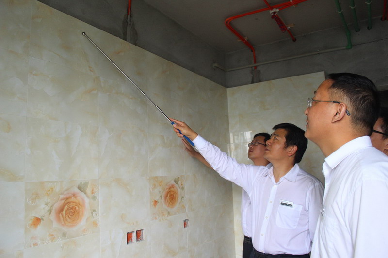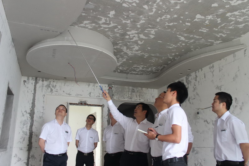 五一小長假即將來臨,裝飾市場也逐步升溫,開工進場戶數多,工人師傅施工進度緊湊。在這個特殊的時間節點裏,也是考驗工程質量、客戶服務、施工進度全方位立體指標的最佳時期。為了確保施工質量和工程進度,4月27日,由張總親自帶隊,以全體管理層組成的巡查隊伍,對恒基·翔龍江畔、雅居樂、融僑城·花樣派、招商科苑、魯能星城·六街區、江與城·薇瀾岸等多個工地進行了巡查。