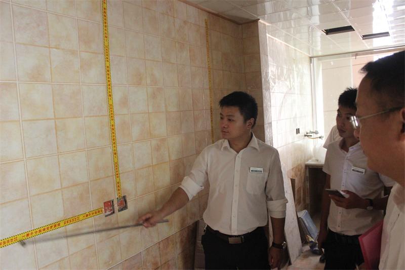 片區張經理正在認真檢查牆麵貼磚情況