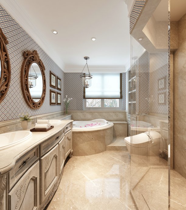 第一、由於濕氣較大,現在主張都是將牆麵貼滿。這樣不僅僅是為了美觀,而且可以抵禦潮濕的侵蝕,保護牆壁的防水層。