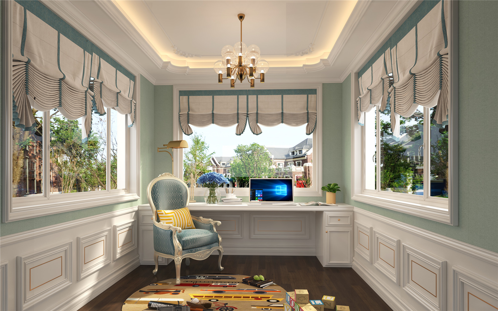 (2)對白天在家辦公的家庭來說,書房的朝向最好為南向,滿足主人在家工作的要求,麵積也要大一些。